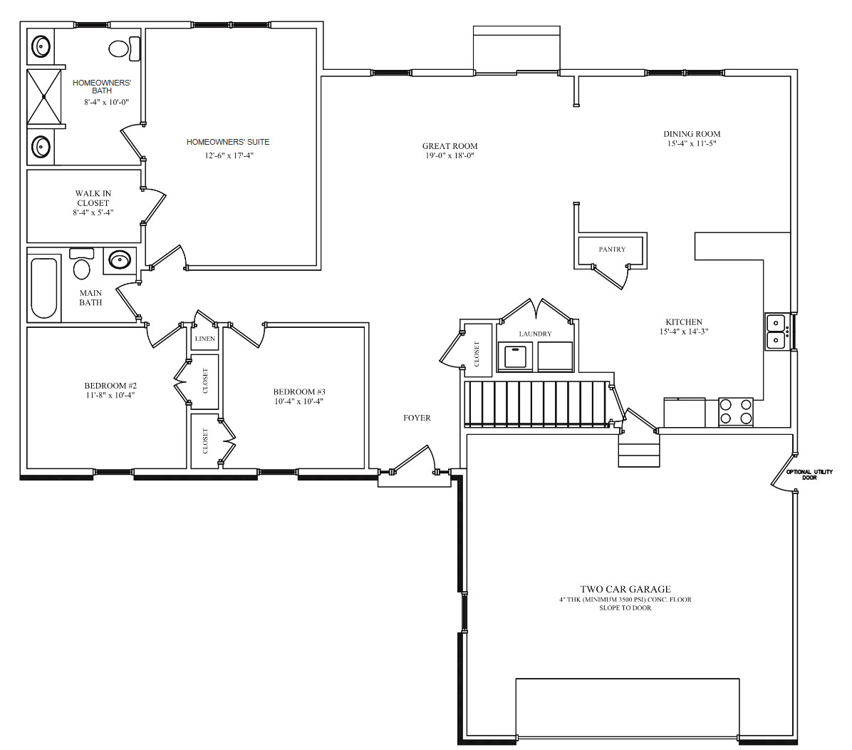 The Revere – 1689sf – Ranch w 2 car garage